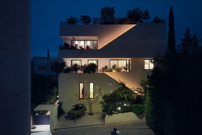 A three-storey residence in Papagos, designed by ΝΑΜΑ Architects between 2020 and 2023, explores contemporary urban living through a hybrid model of collective life and spatial autonomy. Two families coexist within a single building, where vertical connectivity and a network of shared outdoor spaces act as catalysts for social interaction, without compromising privacy or the distinct needs of each household.