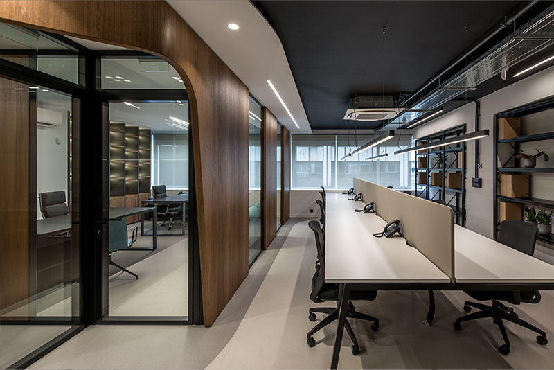 Entering the PSA Marine Bureau offices in Piraeus, a clear curved line becomes the guide of the spatial experience: it leads along the elongated interior, organizes the program, and bends gently to shape a smooth circulation path. In the 2022 design, iy SYNAPSIS ARCHITECTS translate this central idea into material form: wood introduces a warm, refined atmosphere, glass allows transparency and the diffusion of light, while metal offers a subtle reference to the maritime context. The result is a workplace that balances rhythm, focus, and collaboration.