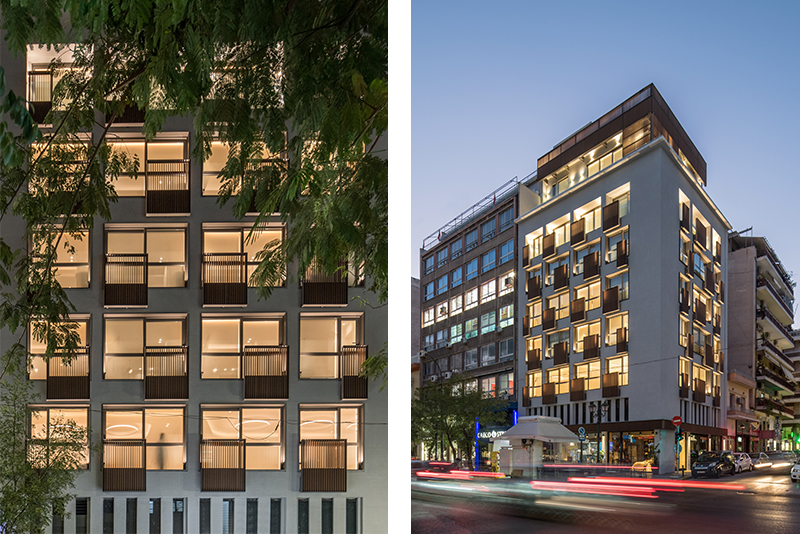 A 1958 mixed-use building in downtown Piraeus, owned by Hellenic Properties, was transformed into a 33-key urban boutique hotel by AVW Architecture in 2023. The redesign reinterprets the existing shell through clean geometry, timber screens and a distinctive night-time lighting scheme, turning the building into a new corner landmark within the dense urban fabric. The project received the International Property Award for Best New Small Hotel Construction & Design in Greece, and today operates as Twinn, Downtown Piraeus, contributing to the regeneration of the city’s historic commercial core.